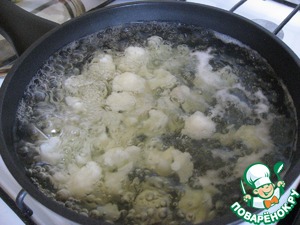 Как только вода закипит, опустить в кипящую воду цветную капусту.