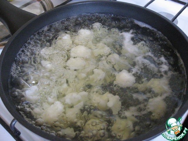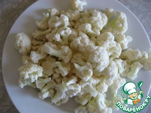 Вымыть цветную капусту и разобрать на соцветия средней величины, т. к. при кипении они разварятся..