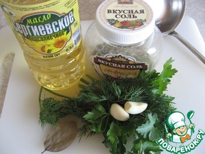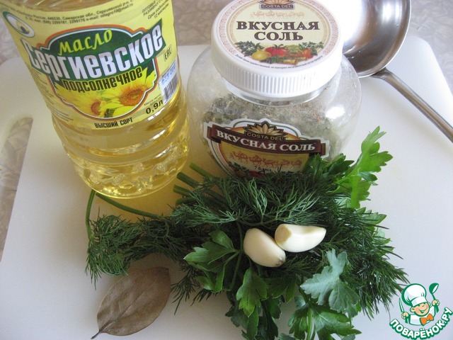 Помыть, почистить другие ингредиенты для супа: лавровый лист, укроп, петрушку и чеснок. -