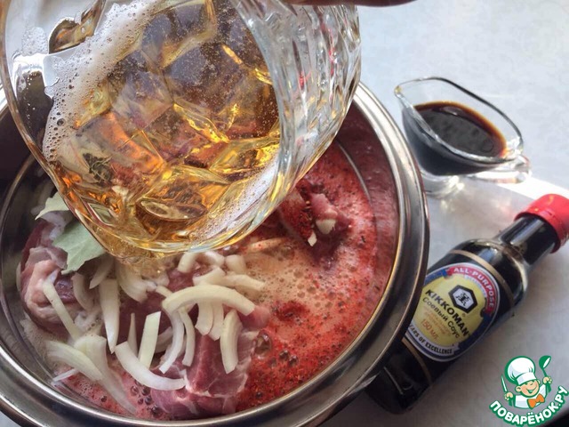 Мясо получается необыкновенно вкусным с приятным хлебно-пивным ароматом.