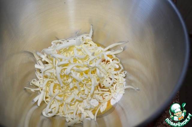 Смешать муку, тростниковый сахар, 1/2 взбитого вилкой яйца.
