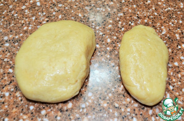 Разделить тесто на две части - 200 г. и 80 г..
