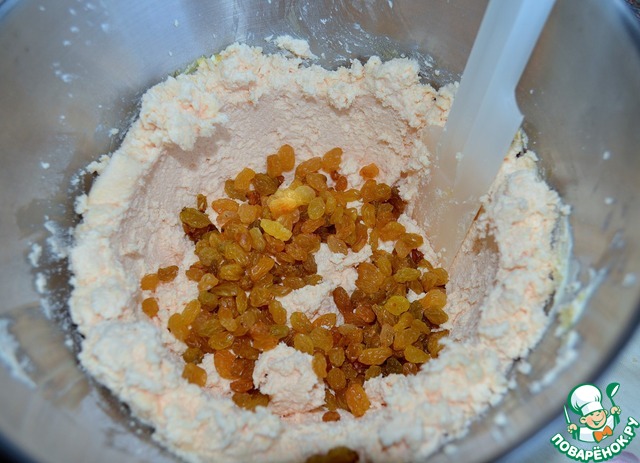 Вымытый и обсушенный изюм вмешать в начинку.