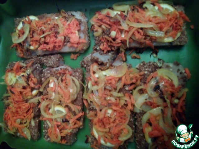 Сыр потереть на крупной терке и посыпать рыбу. Противень убираем в заранее разогретую духовку до 200 градусов на 30 мин.