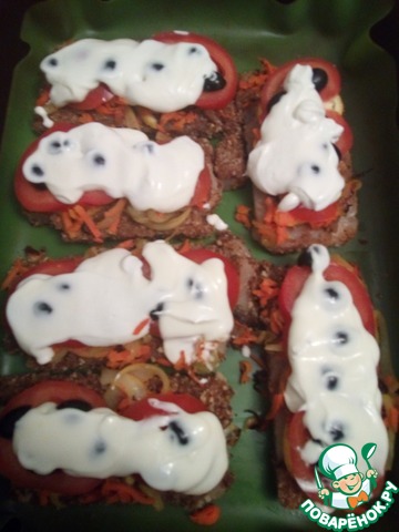 Сметану смешиваем с майонезом и обмазываем рыбу.