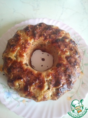 Готовое кольцо вытаскиваем из формы и в середину выкладываем соус. Мясное кольцо готово!