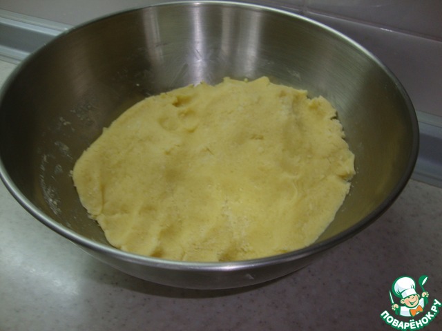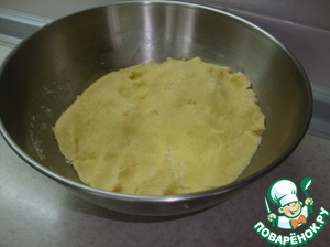 Растереть сливочное масло с сахаром и желтками. Добавить постепенно муку с разрыхлителем и замесить тесто. Поставить его минут на 10-15 в холодильник.