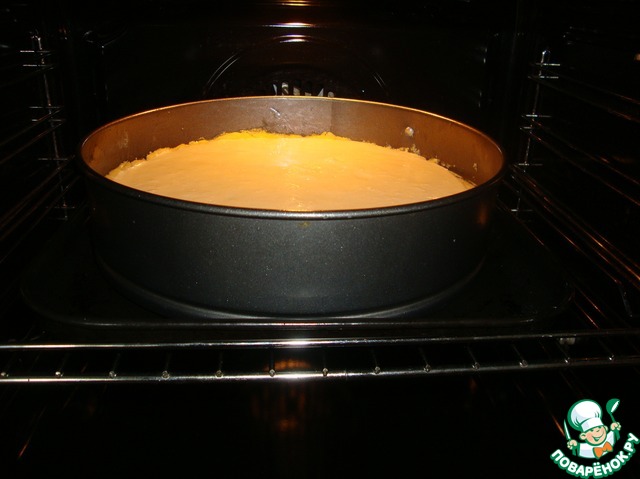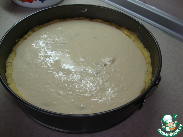 Вылить на тесто начинку.