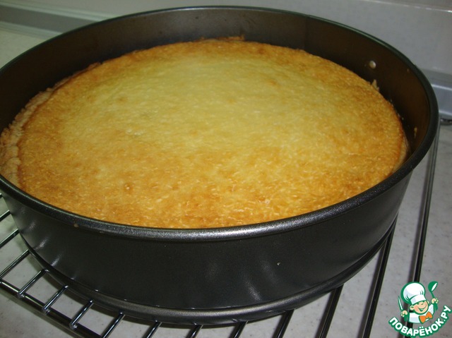 Готовый пирог сначала остудить немного в форме.