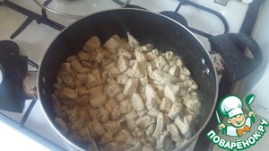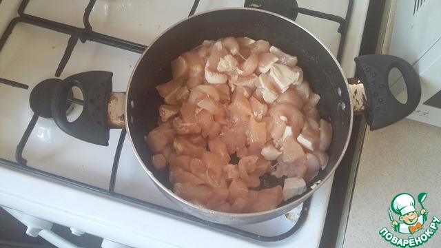 И так! берем куриное филе, моем, нарезаем кубиком или произвольной формы.