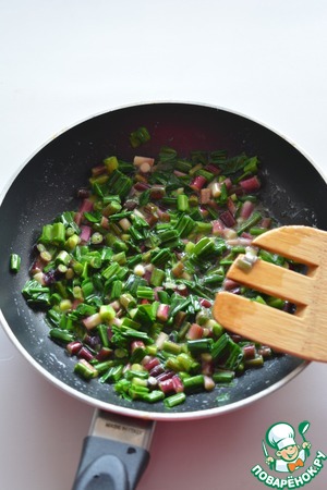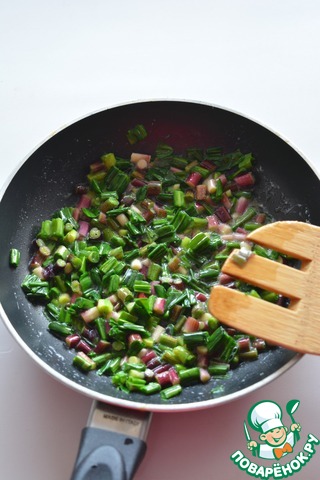 Разогрейте в сковороде сливочное масло, добавьте черемшу и обжаривайте около 5-7 минут. При термической обработке черемша теряет острый вкус чеснока, но аромат остается!