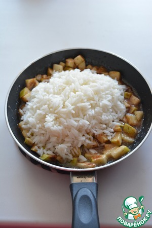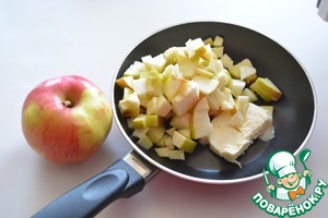 • А пока варится рис, нарежьте кубиками крупное яблоко и потушите его 5 минут в сливочном масле