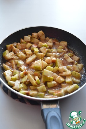 • Добавьте сахар и корицу, тушите до карамелизации (около 5 минут)