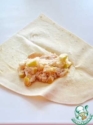 • На каждый кусок лаваша выложите по 2 ст. л. начинки