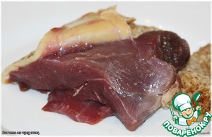 Для сочности в этой ветчине (кто хочет – может называть рулетом, я не против) из тушки домашней утки, а вернее уток, были добыты грудки. Если кому интересен подробный процесс добывания грудок из тушки утки, то найдите тут мою тему или спросите - дам ссылку в личку.