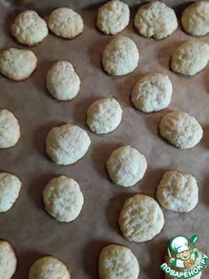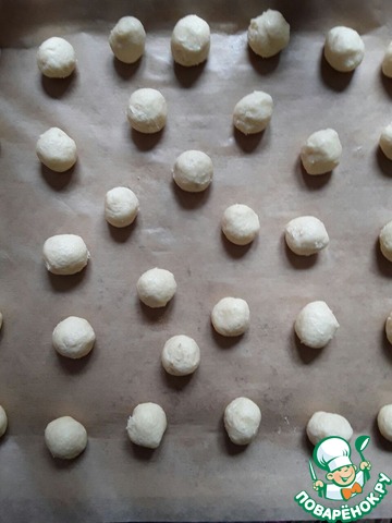 Формируем печенье любым удобным для вас способом. Я просто формировала маленькие шарики и выкладываем их на застеленный пекарской бумагой противень на небольшом расстоянии друг от друга.