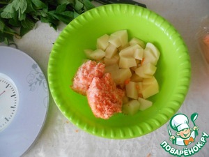 Картофель нарезаем кубиками.