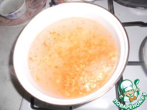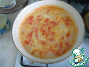 В суп добавляем взбитые яйца, молоко, сливочное масло, варим 5 минут.