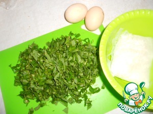 Яйца взбиваем, зелень (сныть и лук нарежем). Отварной рис вынимаем из пакетика.