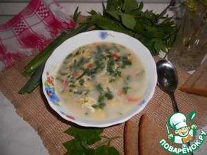 Рецепт «Дачный рисовый суп со снытью»:
