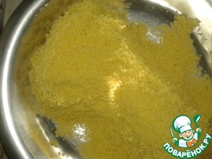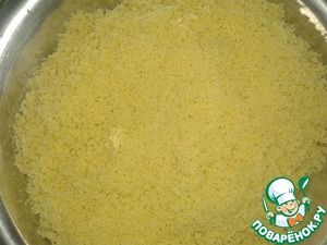 Прежде чем готовить подливу, арабы ее называют "марак" нужно поставить вариться кус кус... для этого высыпьте кус кус в не слишком глубокую посуду и возьмите столько же воды, сколько у вас кус куса... то есть если 1 стакан кус куса, один стакан воды... у меня одна маленькая чашечка... вливайте воду в кус кус порциями маленькими и разминайте руками, так, чтобы не было комочков..
