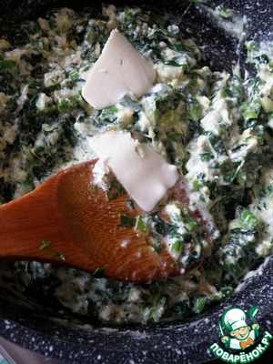 Вбиваем яйца, перемешиваем и чуть солим, не забивая нежной сладости зелени. Как только яйца схватились, выключаем нагрев и кладем сверху тонкие пластики сливочного масла. Пусть они растают, после перемешиваем еще раз.