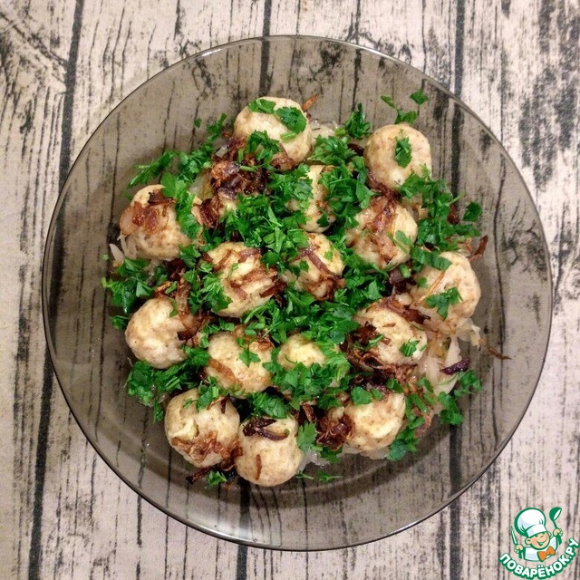 Готовые кнедлики сливаем через дуршлаг или достаем шумовкой.