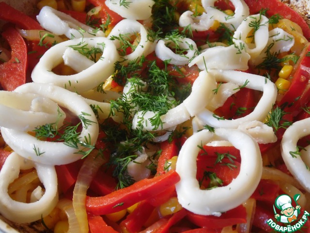 Очень люблю морепродукты вообще и кальмары в частности! Поэтому с удовольствием пробую различные врецепты их приготовления. Сегодняшний вариант - с перцем и кукурузой. А какой гарнир лучше всего подходит к морепродуктам? Конечно же, рис!