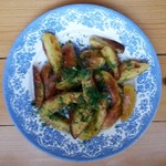 Далее выкладываем картошку в блюдо, заправляем солью, пряностями и маслом, перемешиваем и выкладываем на противень, далее - в духовку 180 град. на 20-25 мин., можно меньше, смотрим на картошку: как зарумянится и станет мягкой - можно доставать