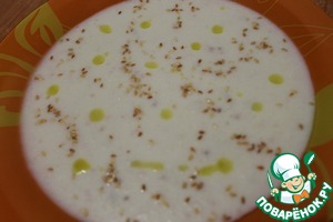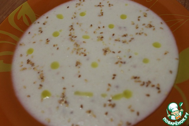 • Наливаем суп в тарелки, украшаем капельками оливкового масла и обжаренным кунжутом. Приятного аппетита!)