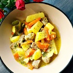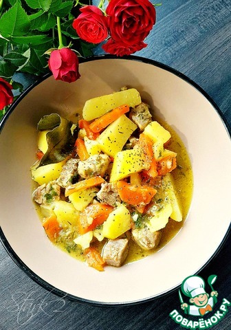 6. У меня практически сложилось, что за 25 минут картошка готовится. Поэтому минут через 10 после ее загрузки, отправляю чеснок и лавровый лист. Хорошо мешаю. А еще минут через 10 солю. Начинаю с чайной ложки с верхом. Хорошо мешаю и пробую. Если мало, надо добавлять (но осторожно, чтобы не пересолить, лучше по четверти чайной ложки без верха). Хорошо мешать и пробовать. При достижении лучшего варианта записать общий объем соли с пометкой на какое количество мяса. Еще мин. через 5 или меньше, если долго возимся с солью, пробуем картошку (она не должна быть совсем мягкой). Выключаем и даем настояться минут 30. В это время режу хлеб, завариваю чай, сервирую стол, мою посуду, которая участвовала в готовке. Очень люблю с соусом (Чум-Ча (типа аджики, следите за публикациями) плюс майонез или Чум-Ча плюс сметана). Наслаждайтесь! Из 10 вкушавших ни один не забраковал. Ингредиентов минимум. Чтобы что-то испортить, надо сильно стараться.