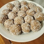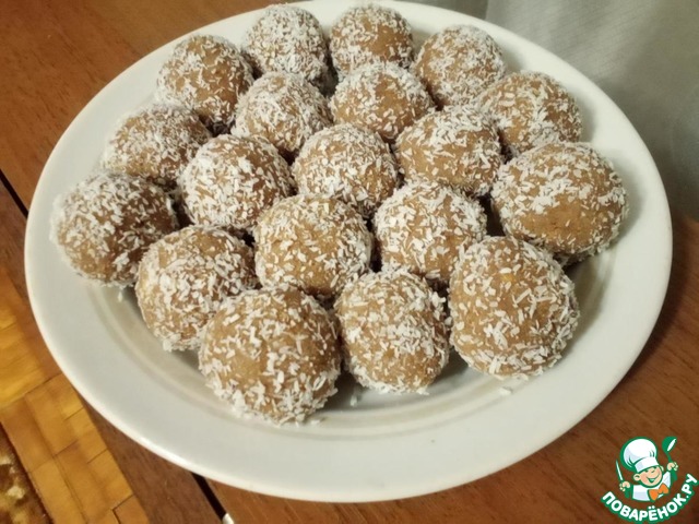 Формируем любую форму и обваливаем в кокосовой стружке.