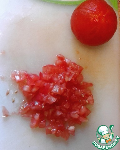 С помидора снять кожу и нарезать некрупно.