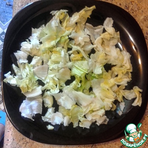 - Листья салата / Салат (айсберг - это для подачи, но он не обязателен) — по вкусу