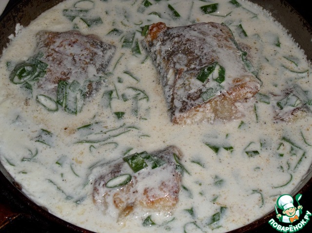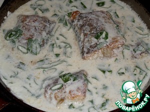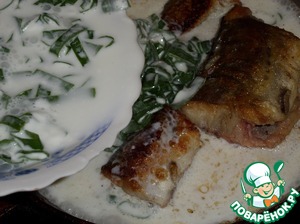 • Добавляем приготовленный соус в сковороду к рыбе.