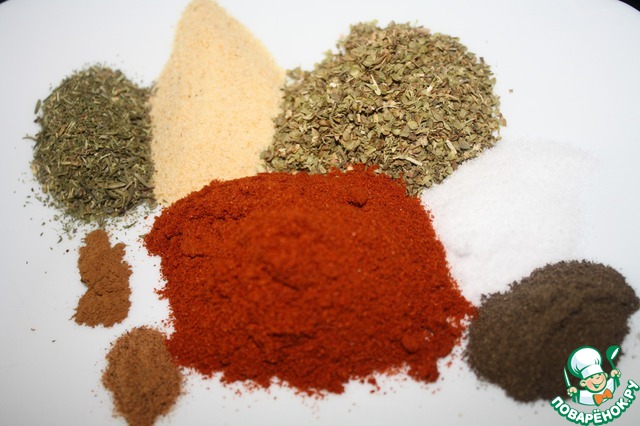 Для истинно греческого аромата гироса нам понадобится вот такая смесь специй. Если есть опасения насчет корицы, то можно добавить щепотку или вообще не брать ее.