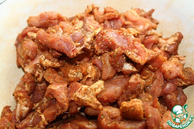 Специи смешать и хорошо перемешать с мясом. Дать пропитаться ароматами около 30 минут.