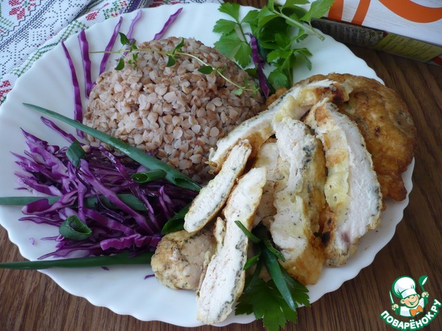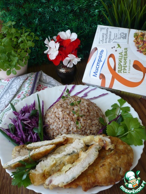 Рецепт «Отбивные из куриного филе с гречкой»: