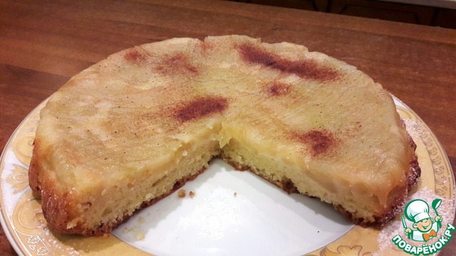 Пирог остужаем в форме! Переворачиваем пирог на блюдо яблоками вверх, аккуратно снимаем пергамент, присыпаем сахарной пудрой и корицей.