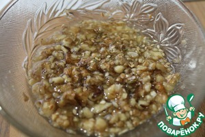 Разделываем стейк на два порционных кусочка, удаляем лишние кости. Выкладываем на них ореховую смесь. Ставим в духовку, разогретую до 190 градусов, на 20 минут.