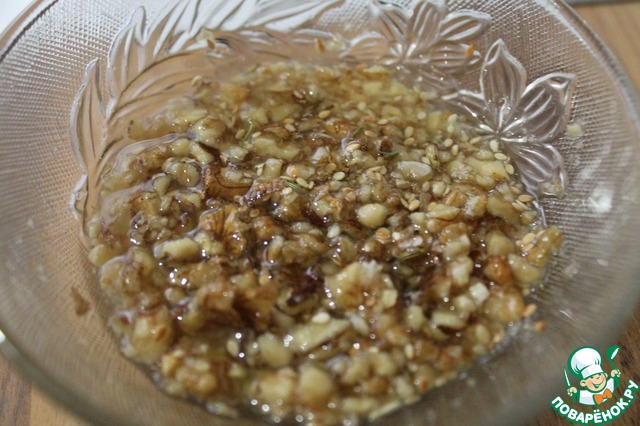 Орехи измельчаем вместе с семенами укропа с помощью молотка. Добавляем растительное масло.