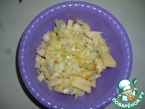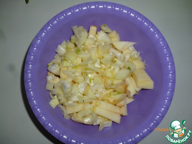 Лучок репчатый с яблочком! Яблоко измельчить можно и по крупнее, превращается почти в пюре.