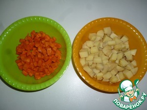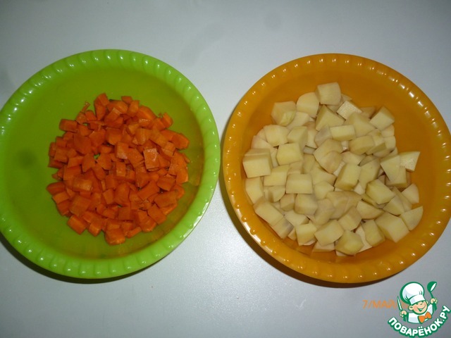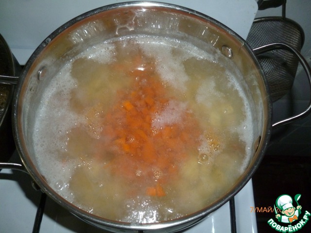 Ну приступим! Варим изначально картофель и морковь. Доводим до кипения и ждем минут 10. Так как вариться будет долго.