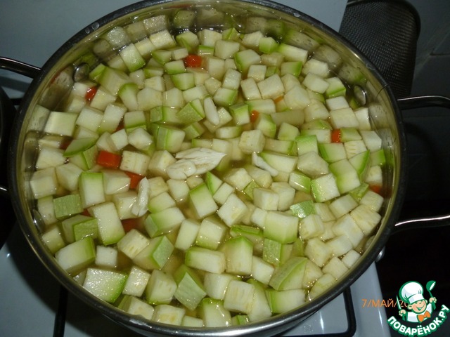 Далее добавляем кабачки и перчик с чесночком. Я не помню писал или нет можно использовать паприку, она более слаще.