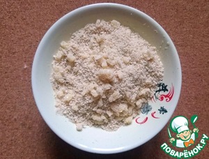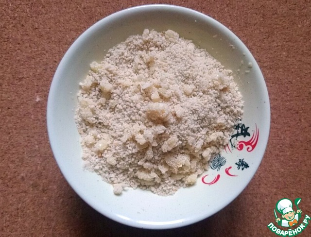 Измельчаем чеснок, смешиваем с панировочными сухарями, перцем и солью.