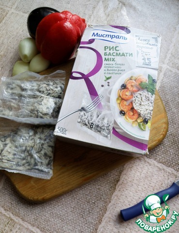 Все просто и готовится моментально. Рис я взяла басмати микс, он очень ароматный и вкусный. Готовится всего 15 минут. Так что пошевеливаемся! Пока закипает вода под рис. Овощи моем и шинкуем. Лук потоньше, баклажаны и перец мелкими кубиками.