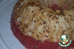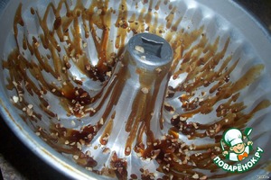 Когда будет почти застывшим, вытянуть форму и побрызгать в виде кляксы на форму, потом посыпать орехами.