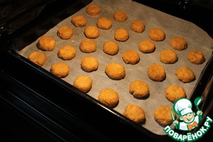 Из теста лепим небольшие печенья и выкладываем на противень, застеленный промасленным пергаментом. Выпекаем при 180 градусах 20-25 минут.
