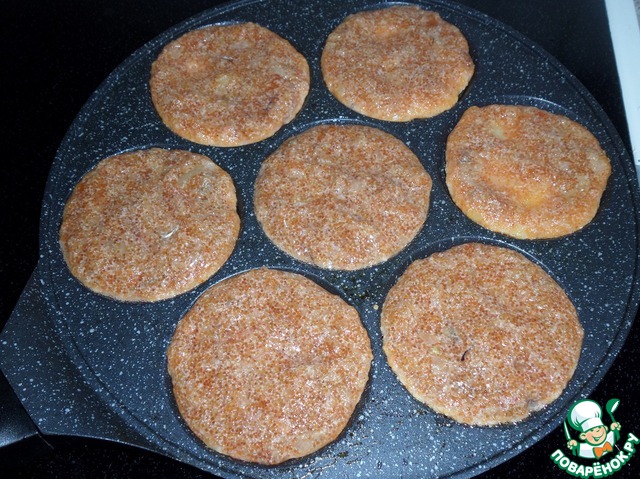 Обжариваем оладьи с двух сторон, по 2 минуты с каждой стороны.