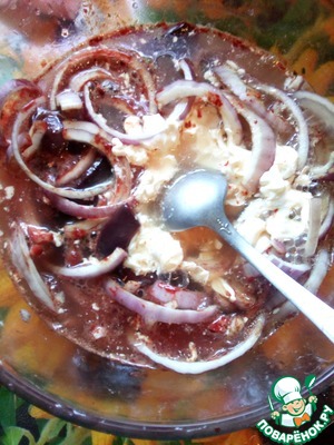 И заливаем кипятком. Кипятка я наливаю немного, так, чтобы не совсем до конца покрыло печень...